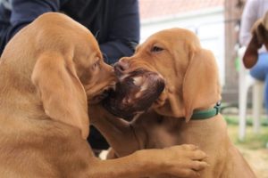 Kein Wunder, denn der Tag war wieder aufregend: am Morgen gab‘ es eine Schnepfe aus dem heimischen Revier, dann stand eine Autofahrt mit Ausflug auf dem Programm. Begleitet haben uns unsere Welpenanwärter und auch der Kontakt zu einer „Fremdrasse“ war spannend. Nachmittags gab es noch ein Gastgeschenk von einer lieben Bekannten: die Lütten freuten sich über einen naturgetrockneten Entenkopf von https://www.dirnaichner.de/schleppwild/…