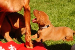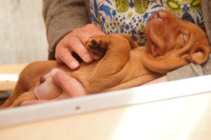 Noch weiß Niemand, welcher Welpe bei wem einziehen wird, denn diese Entscheidung treffen wir. Warum wir? Nun, weil wir der Meinung sind, am besten den Charakter jedes einzelnen Welpen beurteilen zu können. Wir erleben sie jeden Tag, nicht nur ein paar Stunden während eines Besuchs. Ist man zu Besuch, kann vielleicht ein Welpen, der vorher lange getobt hat, völlig müde sein und „langweilig schlafend“ in der Ecke liegen. In Wirklichkeit ist aber vielleicht gerade das der Welpe, der sehr selbständig seine Umwelt erkundet.