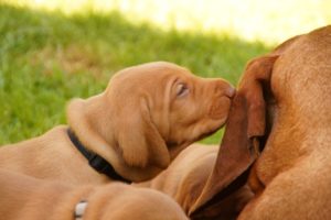 Brandy geht in ihrer Uroma-Rolle immer mehr auf und hier und da kann man beobachten, wie die Welpen nicht nur bei ihr Kuscheln, sondern sogar an ihren Zitzen saugen…