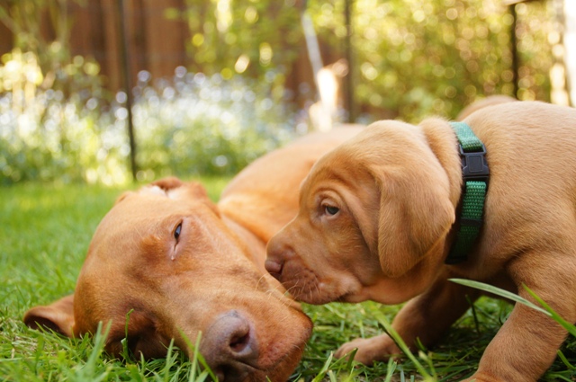 Optisch kann man feststellen, dass die „Hakennasen“ langsam zu richtigen Vizslafängen werden, was die Lütten gleich etwas reifer aussehen lässt.