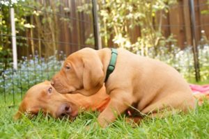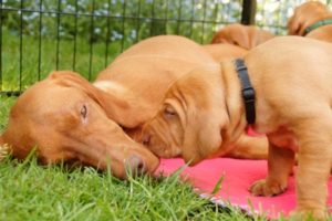 Spielzeug wird für die Welpen so langsam interessant. Neugierig wird alles erschnüffelt und in’s Maul genommen, was neu ist. Deshalb werden sie in den nächsten Tagen immer wieder neue Dinge kennenlernen. Heute war es ein über der Wurfkiste „schwebendes“ Spielzeug, welches erkundet wurde (keine Angst wg. der dünnen Schnur – das Spielzeug steht nur unter Aufsicht zur Verfügung 😉 )
