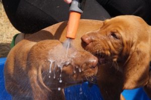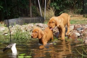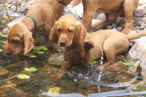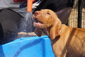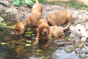 Wasser wird mittlerweile zum selbstverständlichen Element für Welpen. Kein Wunder, bei den Temperaturen…