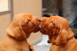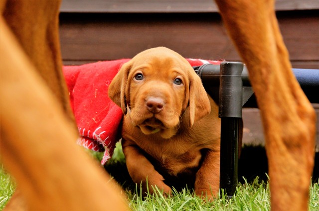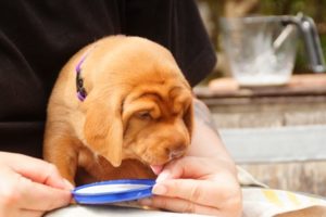 Heute gab es wieder eine Premiere: die erste kleine Zusatzfütterung stand auf dem Programm. Sonntag werden die Welpen ja schon vier Wochen alt und bis jetzt hat Enie problemlos gesäugt. Sicherlich könnte sie die Lütten auch noch alleine weiter ernähren, aber mittlerweile ist sie doch etwas geplagt von den spitzen Zähnen… Und das Säugen zehrt sehr, sie hat – trotz enormer Steigerung der Futtermenge – doch ziemlich abgenommen. Deshalb also ab heute Beginn der Zufütterung. Gestartet sind wir mit einem Minischälchen voll Ziegenmilch. Jeder für sich hat eins bekommen, denn auch das Trinken/Fressen will gelernt sein (es hat übrigens jeder schnell begriffen, wie das mit dem Milchschlabbern geht 😉 ) und der Verdauungstrakt der Welpen soll sich langsam an die neue Nahrung gewöhnen. Da es heute nach der Fütterung keinerlei Auffälligkeiten bei den Kleinen gegeben hat, wird die Menge ab morgen langsam erhöht.