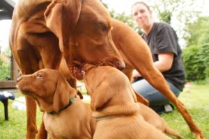 Heute gab es wieder eine Premiere: die erste kleine Zusatzfütterung stand auf dem Programm. Sonntag werden die Welpen ja schon vier Wochen alt und bis jetzt hat Enie problemlos gesäugt. Sicherlich könnte sie die Lütten auch noch alleine weiter ernähren, aber mittlerweile ist sie doch etwas geplagt von den spitzen Zähnen… Und das Säugen zehrt sehr, sie hat – trotz enormer Steigerung der Futtermenge – doch ziemlich abgenommen. Deshalb also ab heute Beginn der Zufütterung. Gestartet sind wir mit einem Minischälchen voll Ziegenmilch. Jeder für sich hat eins bekommen, denn auch das Trinken/Fressen will gelernt sein (es hat übrigens jeder schnell begriffen, wie das mit dem Milchschlabbern geht 😉 ) und der Verdauungstrakt der Welpen soll sich langsam an die neue Nahrung gewöhnen. Da es heute nach der Fütterung keinerlei Auffälligkeiten bei den Kleinen gegeben hat, wird die Menge ab morgen langsam erhöht.