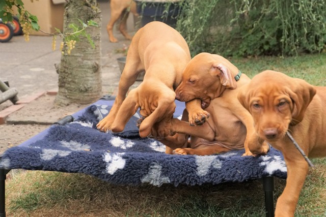 Heute war unsere Zuchtwartin zur Wurfabnahme da: alle Welpen, Mutter Enie sowie das gesamte Umfeld wurde begutachtet. Attestiert wurden muntere, agile und kräftige Welpen, die – wie Enie – einen sehr guten Eindruck machen.