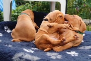 Mittlerweile verbringen die Lütten den ganzen Tag im Garten und im Welpenhaus, nachts sind sie noch im Wohnzimmer (wird sich aber bald ändern).