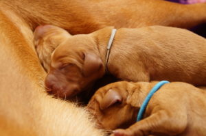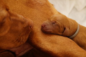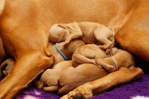 Die Geburt verlief problemlos. Enie hat, als Erstgebärende, alles prima gemacht. Wir hatten auf einen etwas größeren Wurf gehofft, aber statt mehrerer Welpen haben diese höhere Geburtsgewichte.