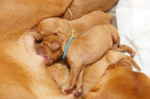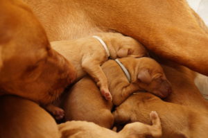 Die Geburt verlief problemlos. Enie hat, als Erstgebärende, alles prima gemacht. Wir hatten auf einen etwas größeren Wurf gehofft, aber statt mehrerer Welpen haben diese höhere Geburtsgewichte.