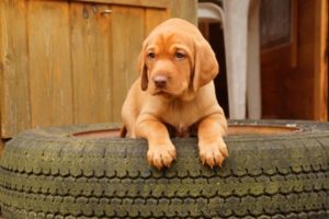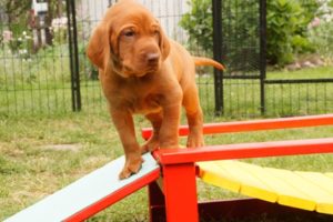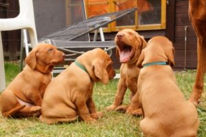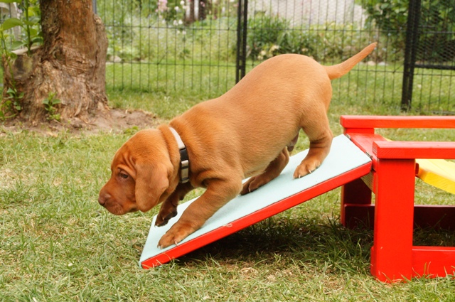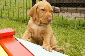 Bewegungstechnisch tut sich immer mehr bei den Kleinen. Irgendwo rauf und runter geht immer (wie man auch beim Welpenspielgerät sieht) und auch das Laufen sieht schon fast perfekt aus. Neu dazugekommen ist heute das Anschleichen mit anschließendem Angriff auf die Geschwister – wobei der Angriff oft noch mehr ein „Umfaller“ ist statt eines Angriffs. Aber naja, Übung macht auch hier den Meister…