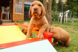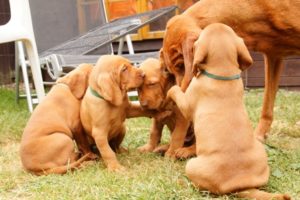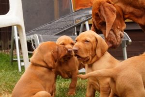 Bewegungstechnisch tut sich immer mehr bei den Kleinen. Irgendwo rauf und runter geht immer (wie man auch beim Welpenspielgerät sieht) und auch das Laufen sieht schon fast perfekt aus. Neu dazugekommen ist heute das Anschleichen mit anschließendem Angriff auf die Geschwister – wobei der Angriff oft noch mehr ein „Umfaller“ ist statt eines Angriffs. Aber naja, Übung macht auch hier den Meister…