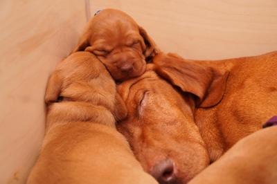 Chaya ist wirklich eine sehr liebevolle und geduldige Mutter, die sich hervorragend um ihre Welpen kümmert. Trotzdem gönnt sie sich nun immer öfter eine „Auszeit“ von den Welpen und kommt wieder zum Kuscheln mit uns auf’s Sofa…