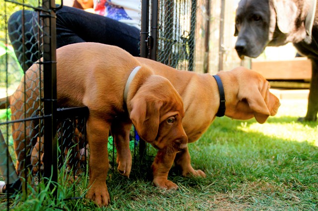 Auch tierischen Besuch gab‘ es heute: Linus, der Labrador von unseren Welpenkäufern Luisa und Michael war mit. Er reagierte völlig cool auf die Kleinen, die ihrerseits zwar neugierig waren, aber doch relativ respektvoll Abstand hielten…