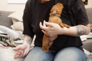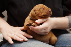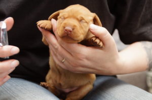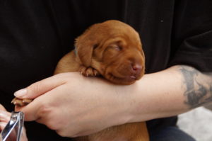 Um Enie’s Gesäuge zu schützen, haben wir heute das erste Mal die Krallen der Lütten gekürzt. Das Festgehaltenwerden fanden sie nicht so wirklich toll und wir waren doch etwas erstaunt, mit wie viel Kraft sie sich dagegen gestemmt haben… Ich muss sagen, dass der Wurf ein sehr kräftiger, agiler und scheinbar frühreifer zu sein scheint.Auf die weitere Entwicklung sind wir sehr gespannt…