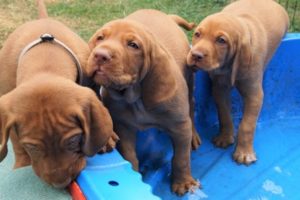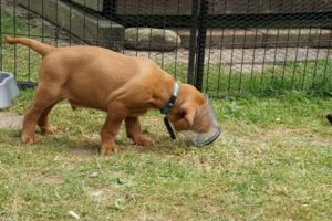 Da es heute wieder sehr warm war, haben wir mal ein Becken mit Wasser zur Verfügung gestellt… So haben die ersten Welpen dann heute mal ihre Pfoten abgekühlt 🙂