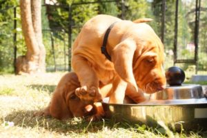 Da es heute wieder sehr warm war, haben wir mal ein Becken mit Wasser zur Verfügung gestellt… So haben die ersten Welpen dann heute mal ihre Pfoten abgekühlt 🙂