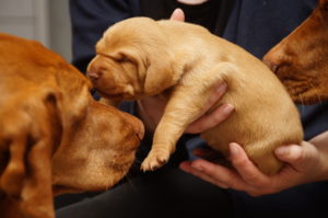 Was ein richtiger Vizsla werden will, der muss auch schon früh auf’s Sofa dürfen 🙂