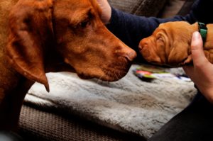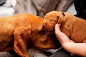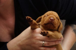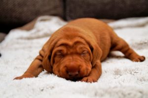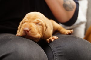 Was ein richtiger Vizsla werden will, der muss auch schon früh auf’s Sofa dürfen 🙂