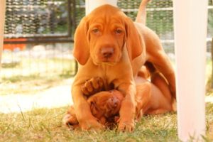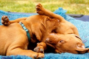 Besonders schätzen sie – ganz Vizsla – die gemütlichen Plätze wie z.B. die Hundeliegen.