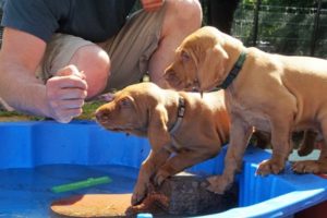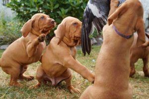 … denn es gab wieder viel zu entdecken. Eine Taube war heute spannend für die Welpen. Die fusselnden Federn haben sie gar nicht gestört. Richtig aufregend war aber der Rotwildlauf (Danke an Luisa und Michael) – da wurden sie gleich ganz aufgedreht und wild.
