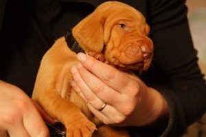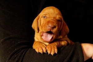 Wie gestern schon geschrieben, haben sich bei den Welpen die Augen geöffnet. Sehen können sie aber noch nichts, denn die Sehfähigkeit entwickelt sich erst ab ca. dem 17. Lebenstag. Dasselbe gilt für die Ohren bzw. das Hören. Auch die Milchzähne brechen langsam durch. Dies ist die sogenannte Übergangsphase, in der das bewusste, aktive Wahrnehmen der Umwelt beginnt.