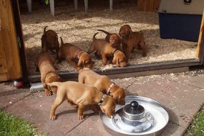 Heute haben die Lütten das erste Mal einen Fuß vor die Tür gesetzt. Interessant, zu beobachten, wie unterschiedlich sie da sind. Der Eine geht gleich mutig voran, der Nächste guckt sich das kurz an und marschiert dann auch los und wieder ein Anderer ist noch ganz schüchtern… – was sich aber sicher ganz schnell geben wird!