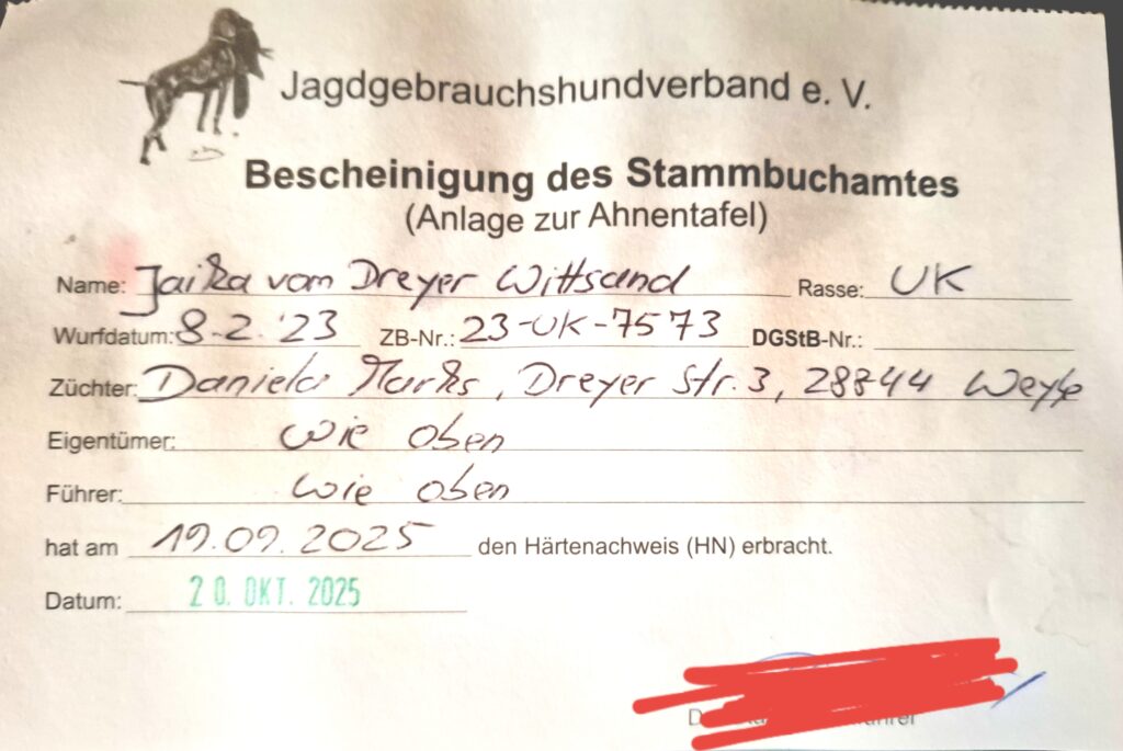 Jaika konnte am 19.09.2025 ihren HN erbringen.