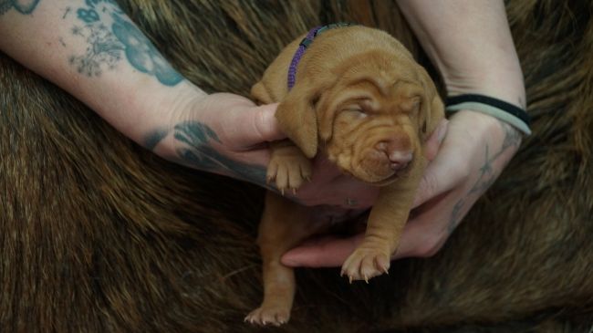 Als dritter Welpe wurde Liesel am 30.04.2025 um 15:45 Uhr mit einem Geburtsgewicht von 352 Gramm gewölft.