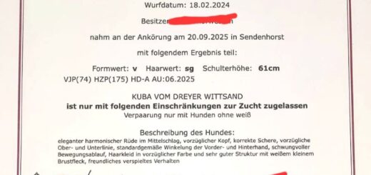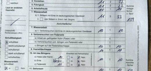 Kuba, gen. Keno, startete am 18.09.2025 auf der Rauwolf mit einer 12! beim Stöbern ohne Ente. Letztendlich reichten die Leistungen im Bringen nicht zum Bestehen der Rauwolf. Er hat die normale HZP mit 175...