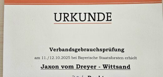 Wiggerl besteht am 11./12.10.2025 beim JGV Augsburg die VGP als Totverweiser mit 301 Punkten im II. Preis. Wir gratulieren ganz herzlich!